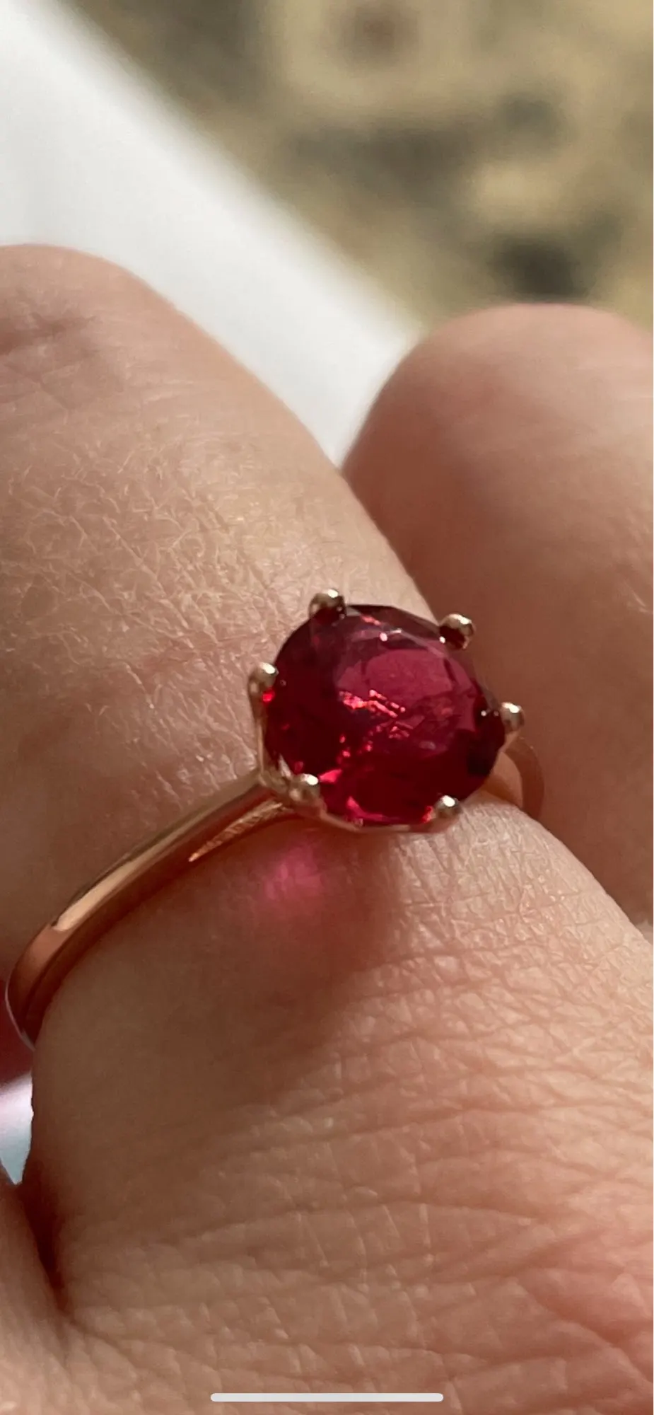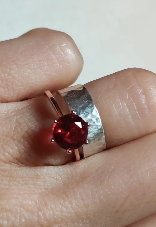 Женское кольцо из серебра 925 пробы с красным кристаллом 8 мм