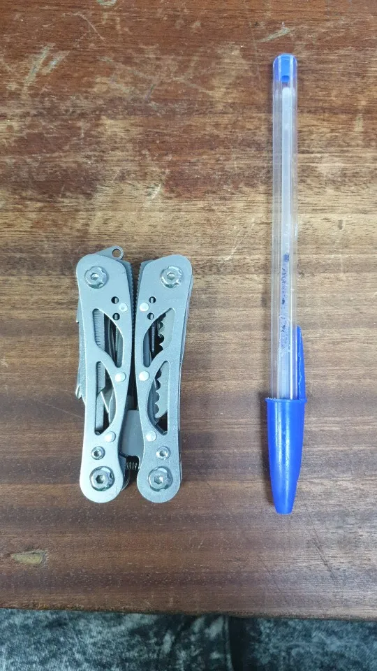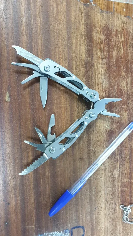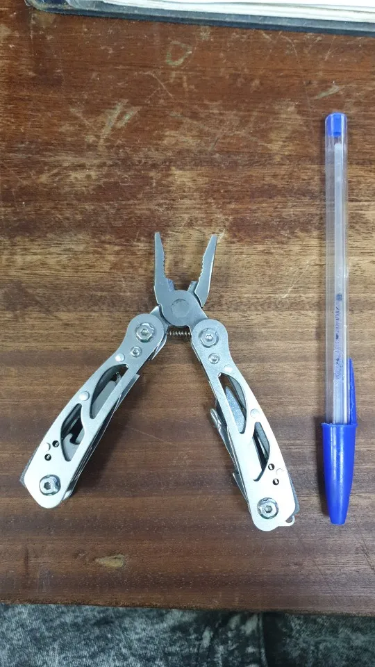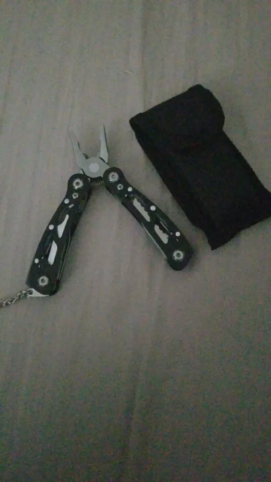 Шел как то долго. Может Новый Год? Самое главное ножевое лезвие , меньше половины длины мизинца. На фото это конечно видно., но как то не явно. Очень короткий ножик в итоге.Полноценно пользоваться не получится. Зато пассатижи в полный рост :(