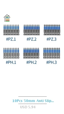 Биты для отвертки с шестигранным хвостовиком Gcr15, 12 шт., противоскользящие, магнитные, с одной головкой PH1, PZ1, PH2, PZ2, PH3, PZ3, длина 50 мм