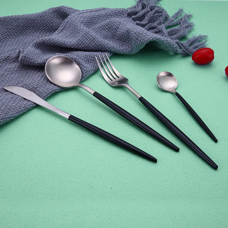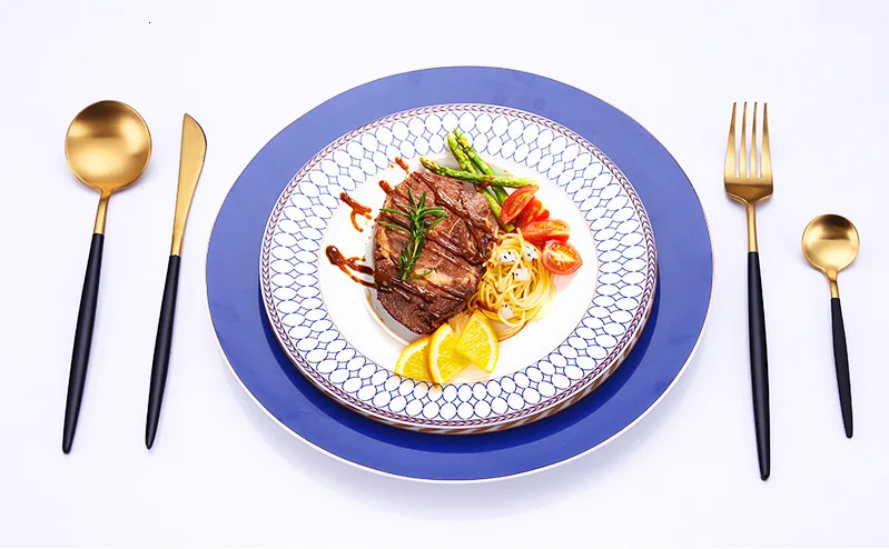 24 шт.компл. набор посуды 1810 нержавеющая сталь черный набор столовых приборов набор ножей набор вилок столовые приборы Золотая тарелка Прямая поставка