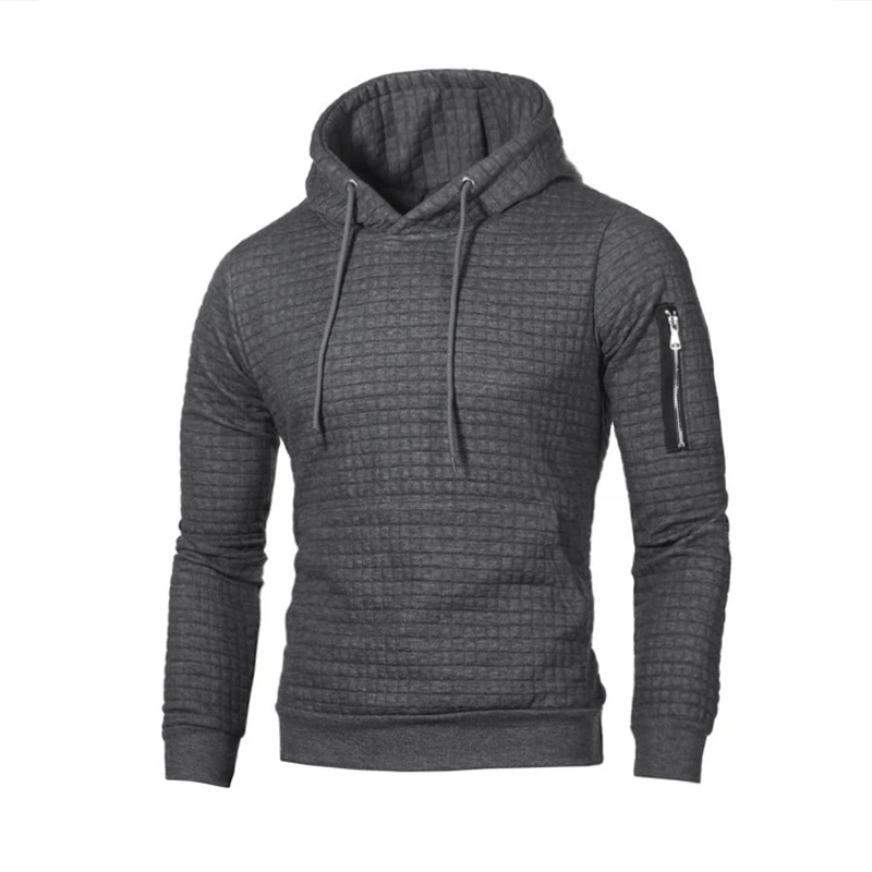 Мужской однотонный пуловер с капюшоном, теплый облегающий Повседнев...
