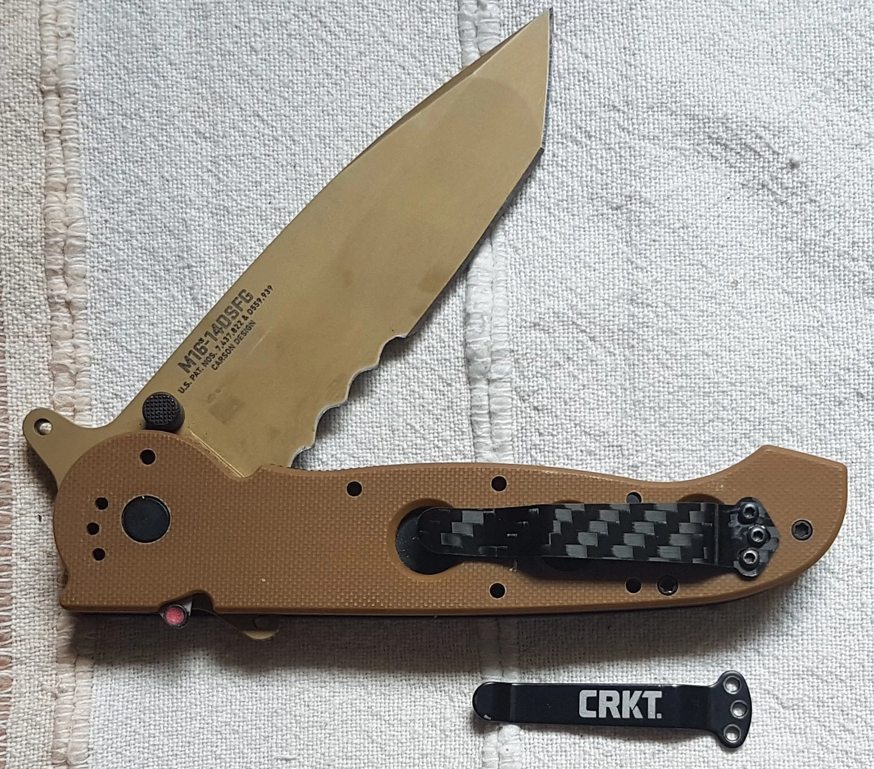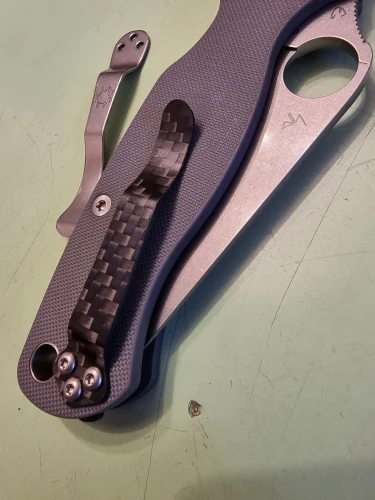 в общем... я не доволен. карбоновая клипса имеет только косметический смысл. прижим плохой , материал оказался очень хрупким. если хотите потерять свой нож то можете смело покупать. итог на фото.продавцу , советую изменить технологию изготовления , а так же изменить изгиб клипсы для сильного прижатия. может как то ее усилить ребром жесткости что ли...