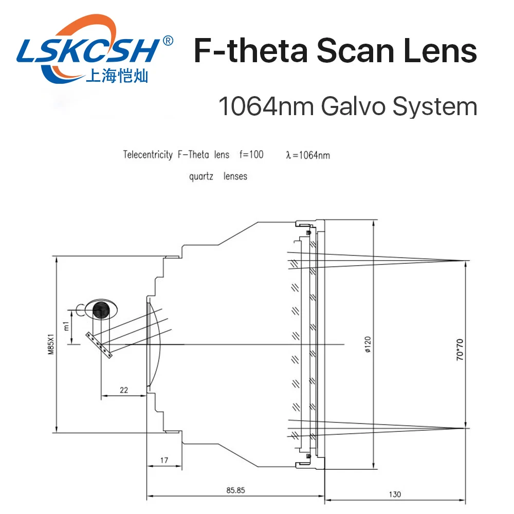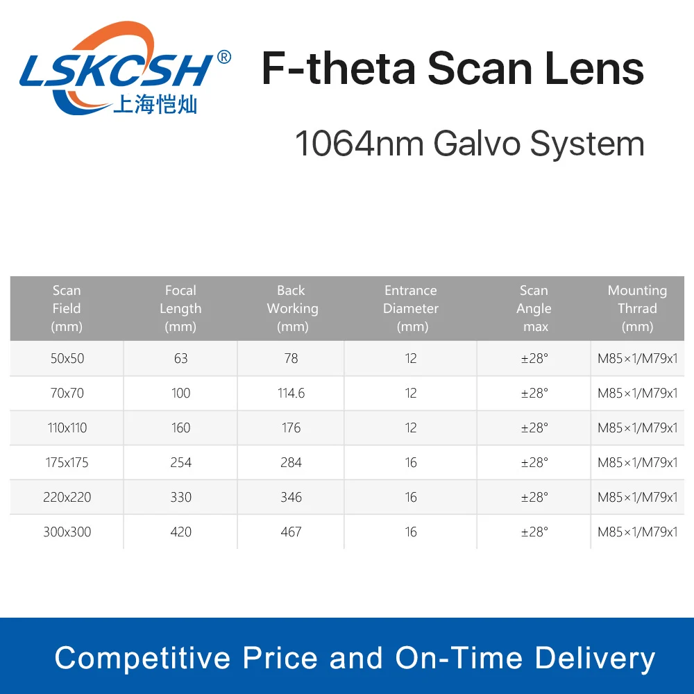 Сканирующая линза LSKCSH F-theta, полевая линза 1064 нм, 50x50-300x300, F63-420mm, для оптоволоконного лазера YAG 1064 нм