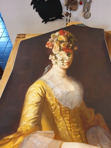 ThemeFlower Veil Portrait of a Woman and Floral Soldier Poster Canvas Print