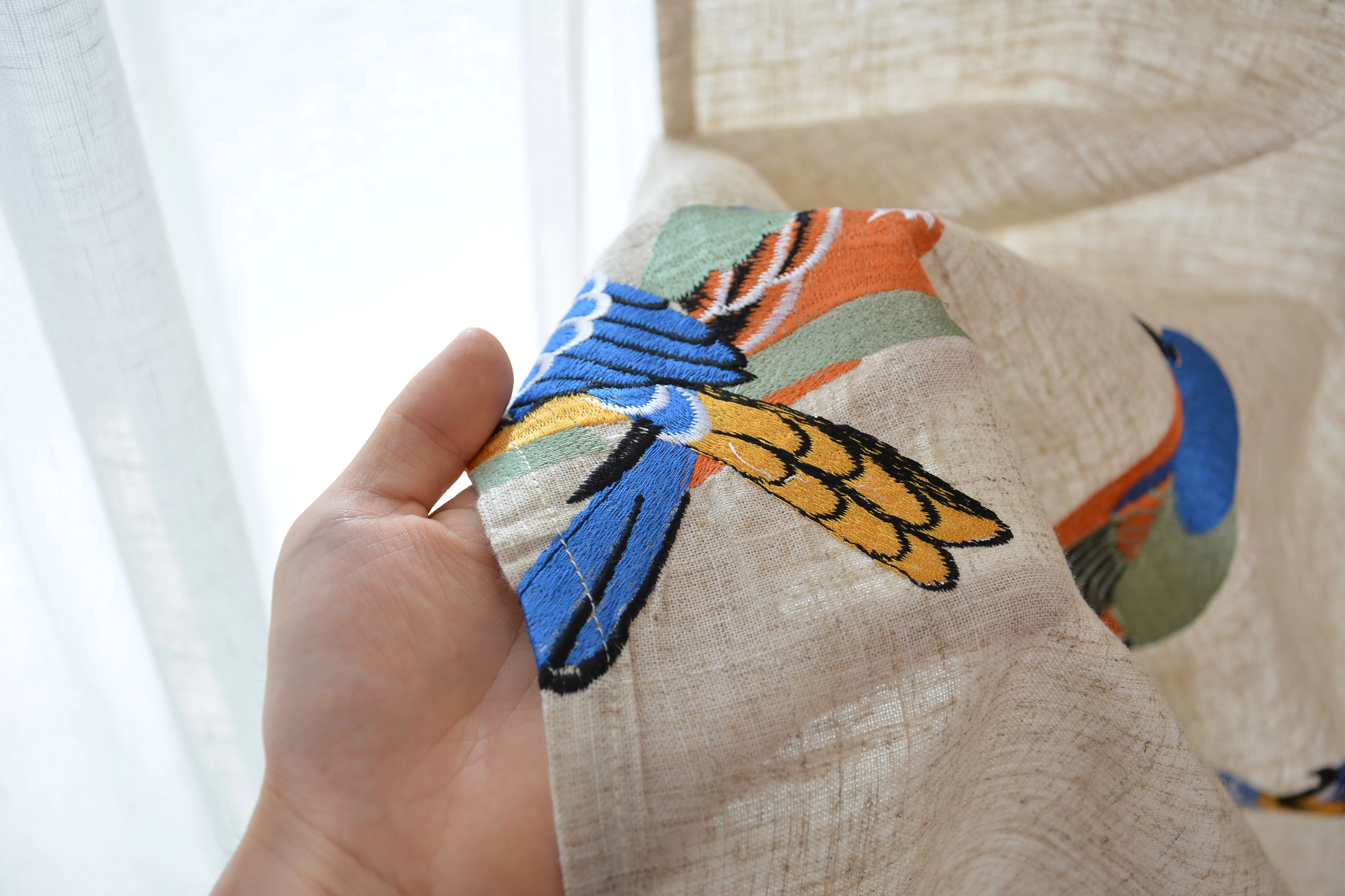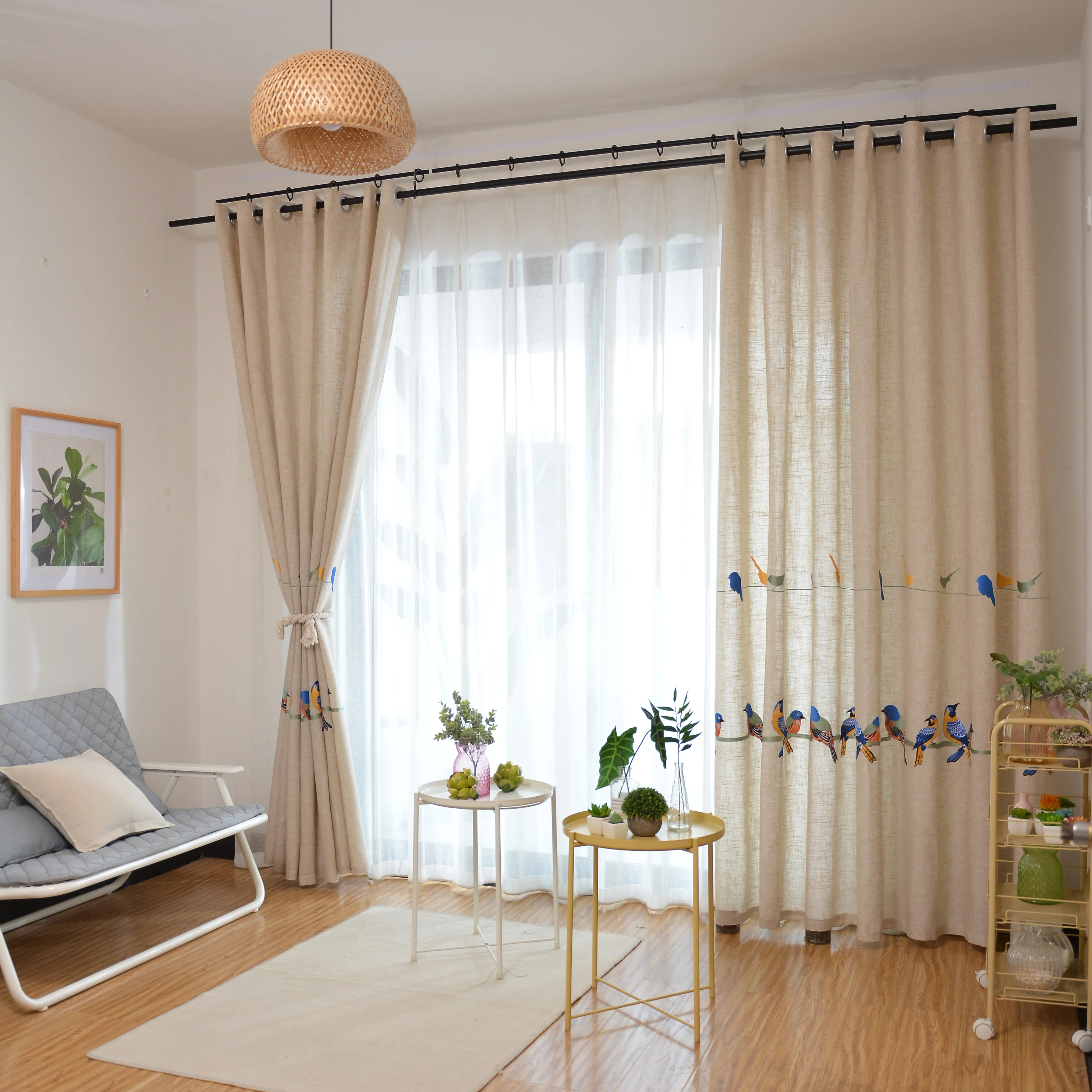 Занавески из хлопка и льна с вышивкой в виде птиц для гостиной, спа...
