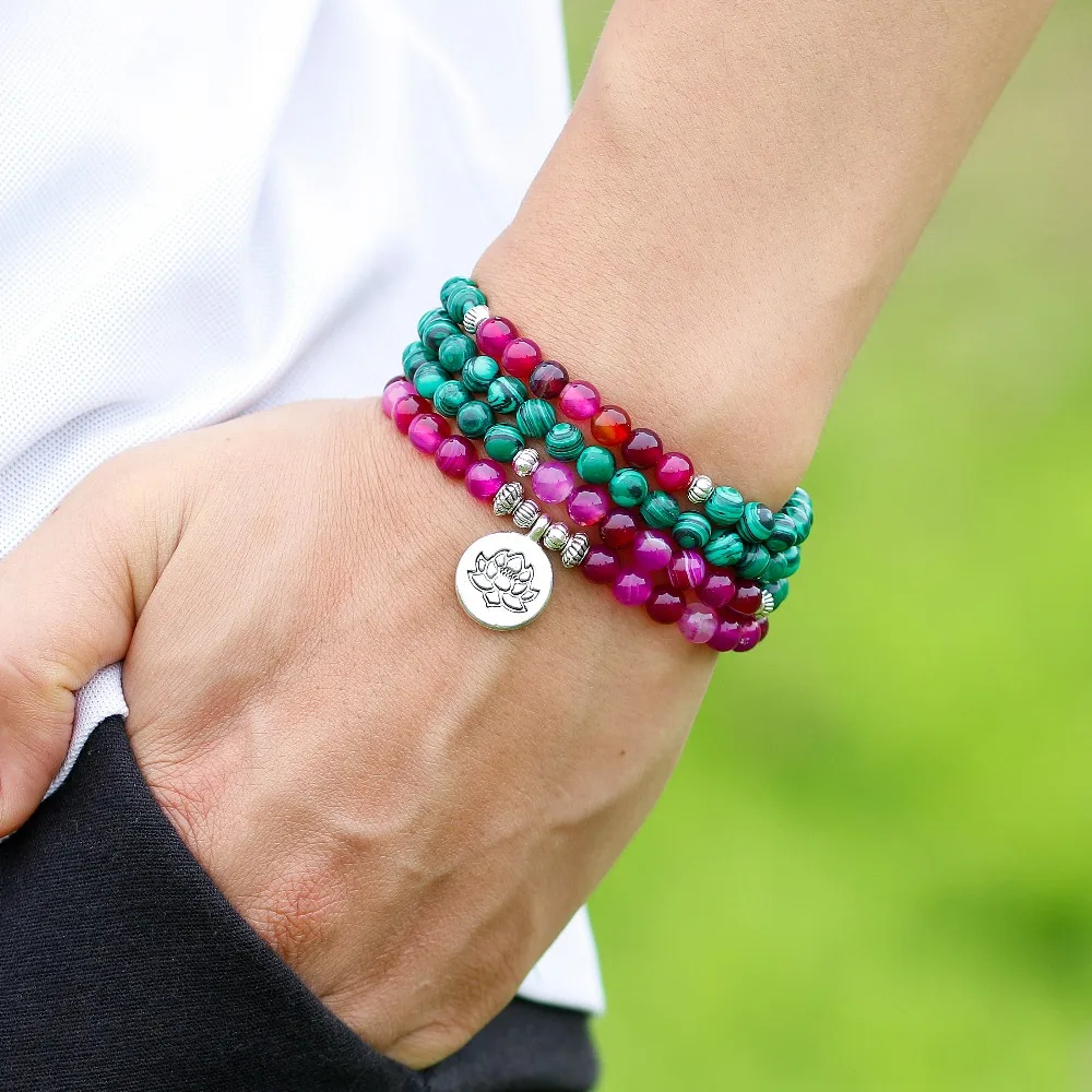 108 Mala Beads браслеты из натурального камня, китайские ювелирные ...