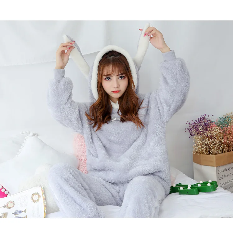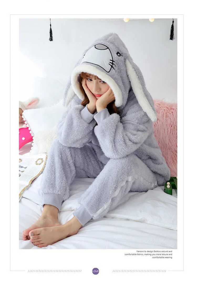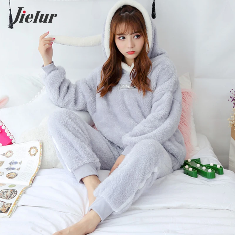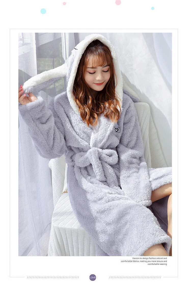 Jielur коралловый бархатный халат Женский мультяшный милый теплый Халат с капюшоном Фланелевое кимоно с кроликом банный халат халаты одежда для сна халат женский теплый
