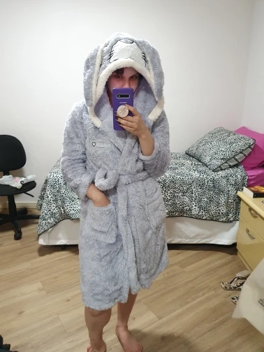 халатик классный,но очень короткий.обращайте внимание не на фото, а на размеры в таблице. теплый, но не логично короткий рост 158, а длина намного выше колена