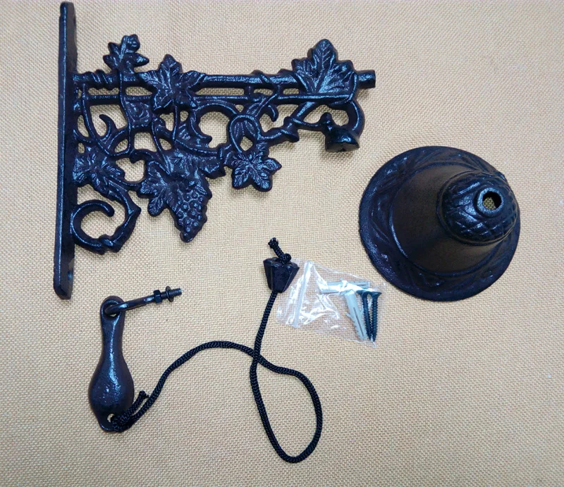 Виноградная лоза, чугунный настенный ручной колокольчик, европейский стиль, ручная работа, домашний садовый декор, деревенский Железный дверной колокольчик