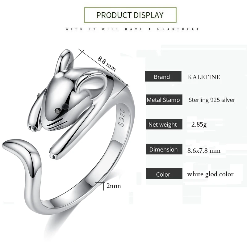 Женские кольца из серебра 925 пробы, с изображением мыши
