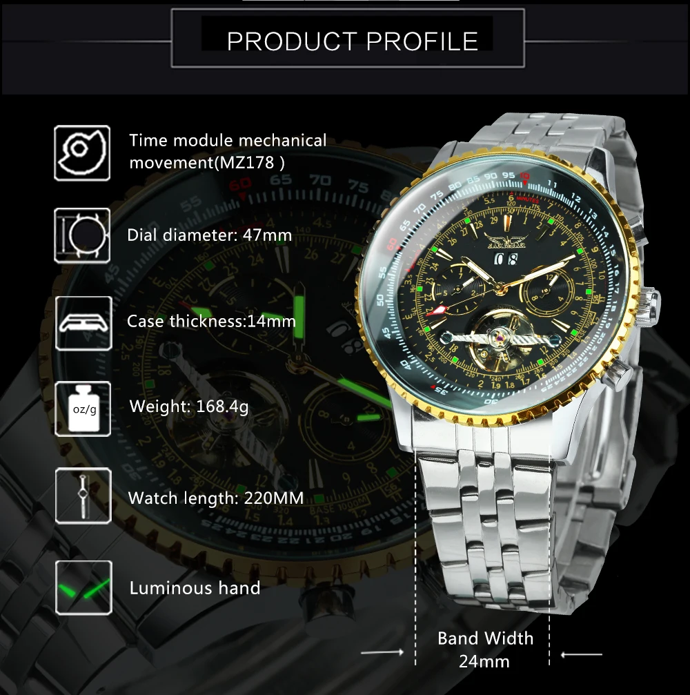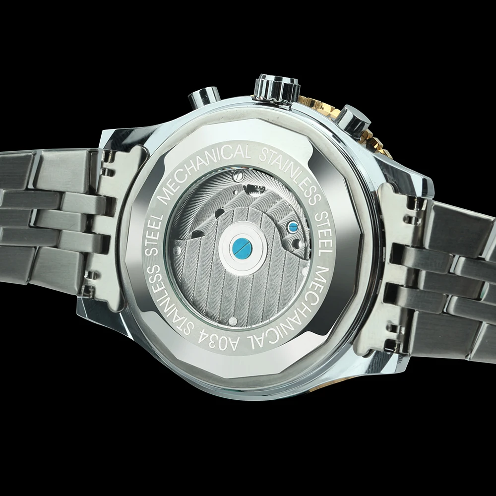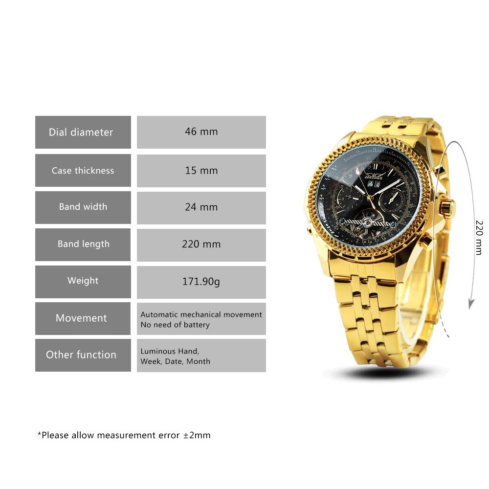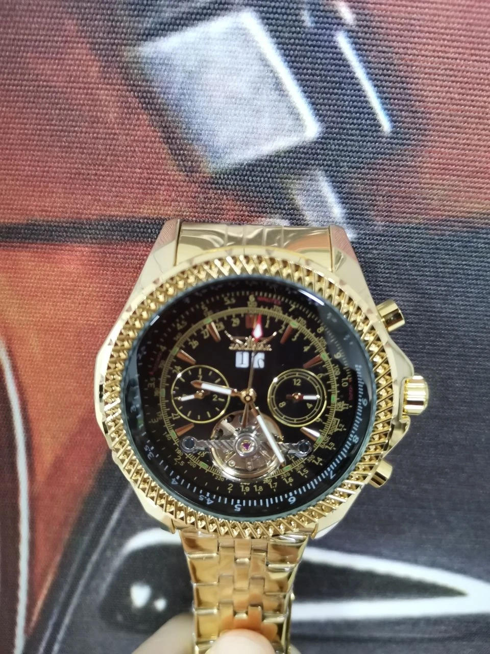 Часы наручные мужские автоматические механические, роскошные Брендовые с турбийоном, с большим стальным ремешком, золотистые, с календарем, 2021