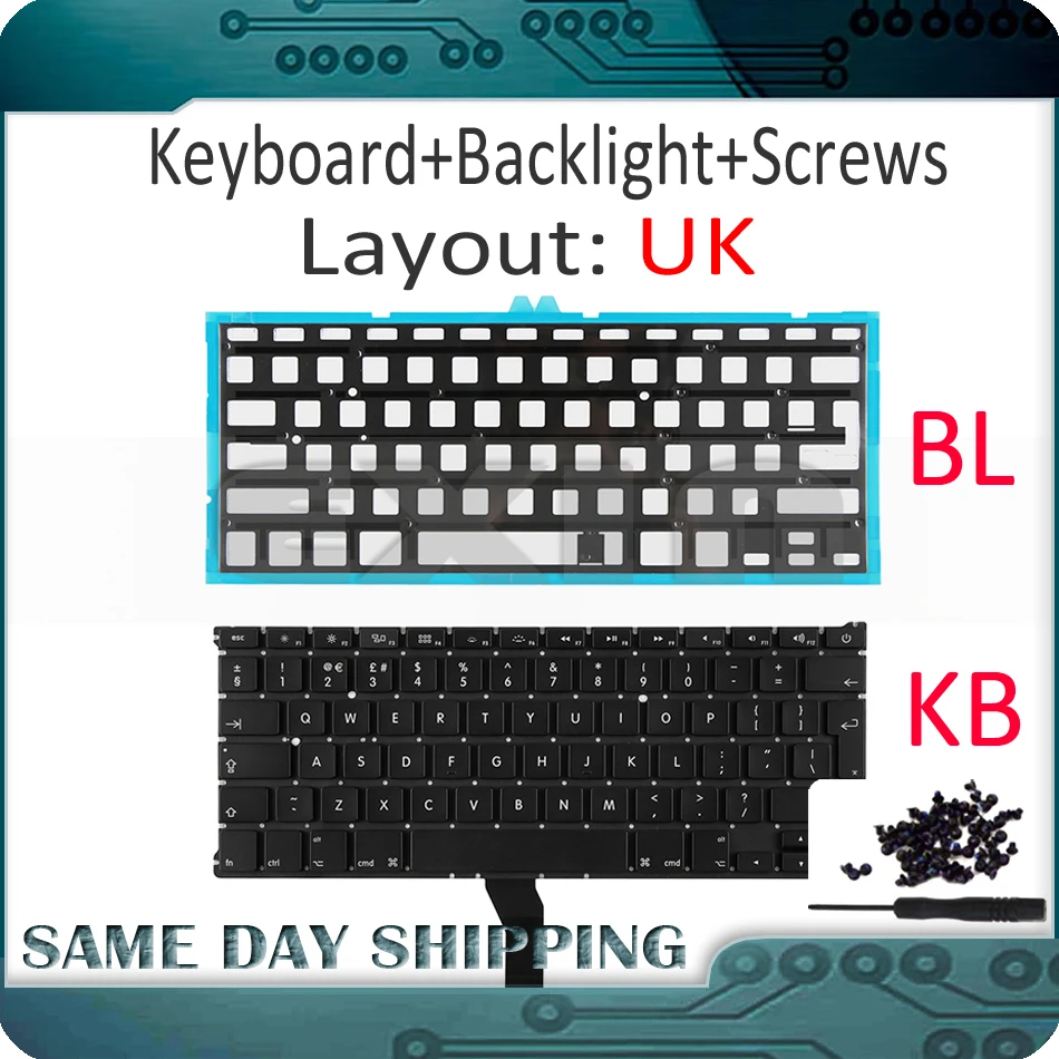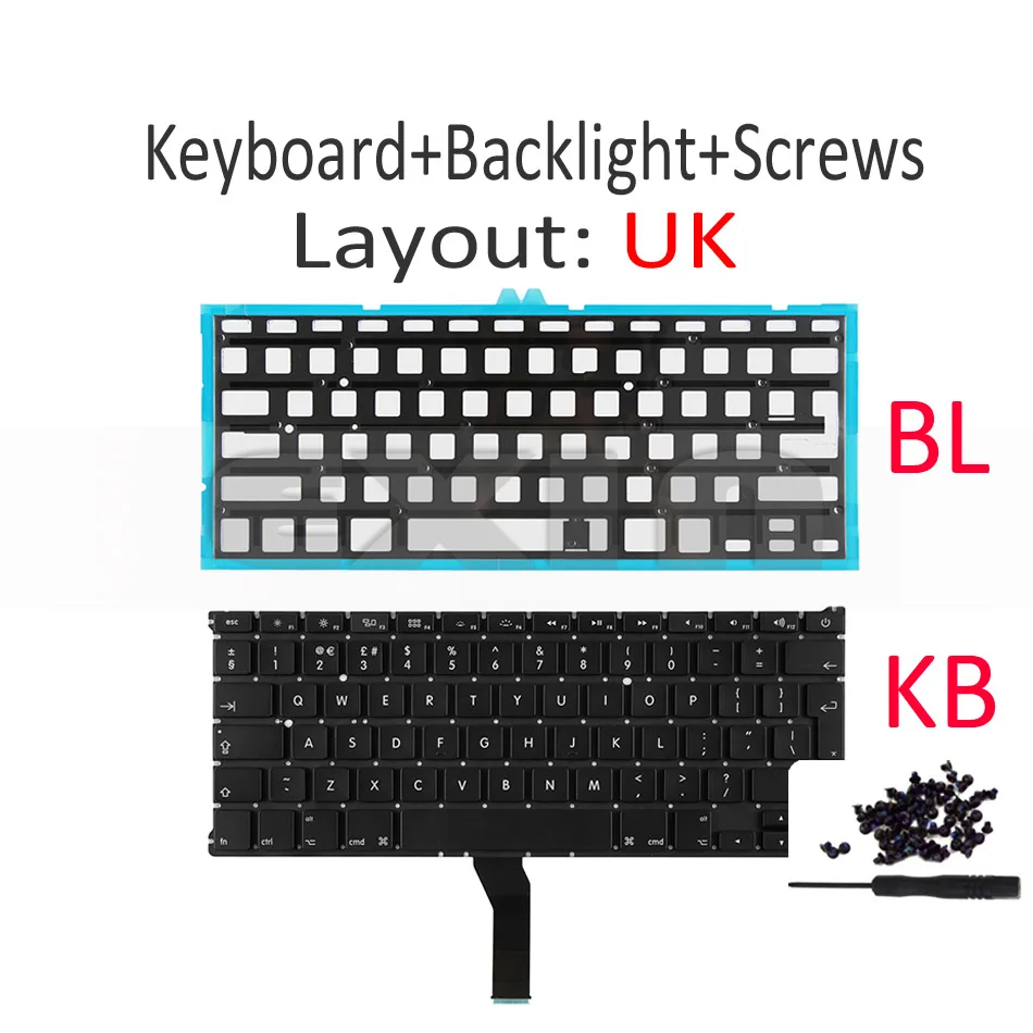 Клавиатура с подсветкой для Apple Macbook Air, 13 дюймов, A1369, A1466, английский язык, с подсветкой, 2011, 2012, 2013, 2014, 2015, 2017