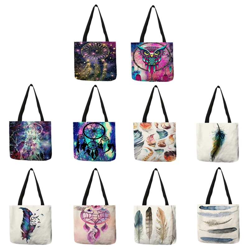 Женская сумка с принтом в виде акварельных перьев Ловца снов 201 Женская Повседневная офисная школьная сумка через плечо прочная переносная сумка для покупок