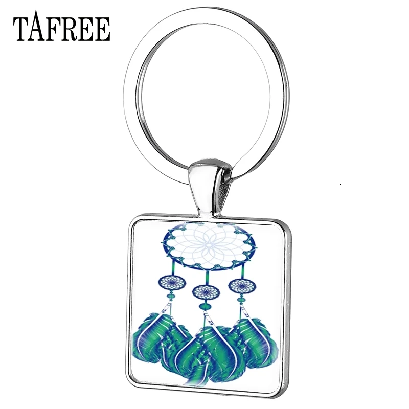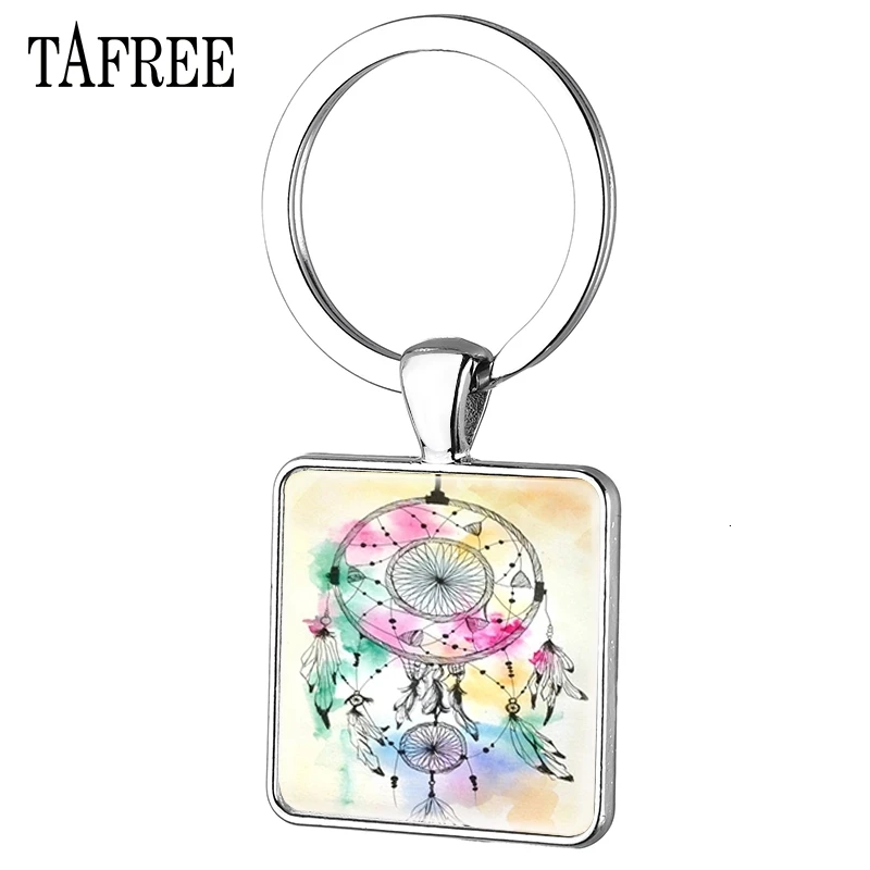 TAFREE ужасные брелки Ловец снов кольцо с украшенной сеткой изображение квадратные Брелки посеребренные ювелирные изделия DH39 ПродуктыФотографии: