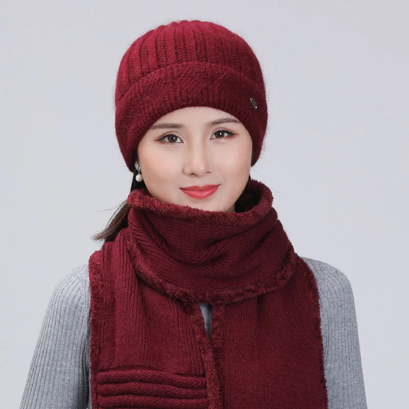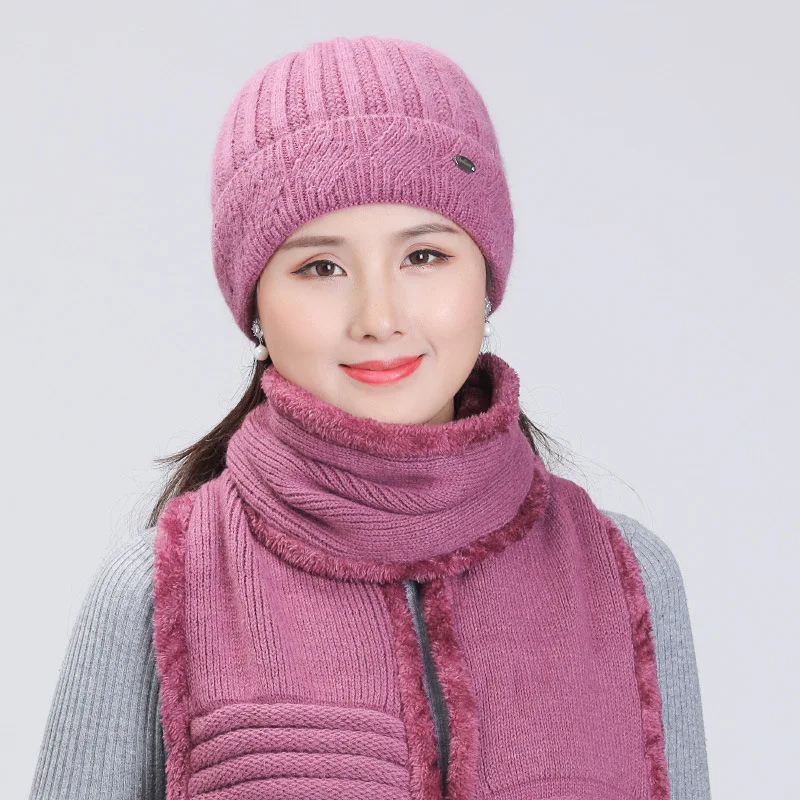 Новый зимний женский комплект из шапки и шарфа с кроличьим мехом, женские теплые шерстяные вязаные плюшевые наборы шарф шапка с крючком, шапки для мам, шарф, шаль, подарки