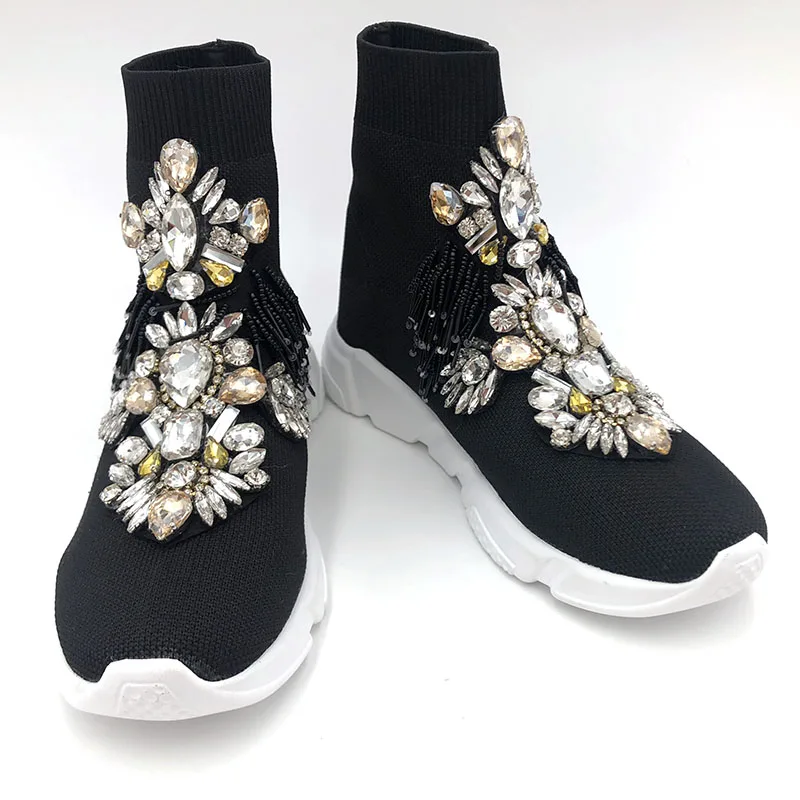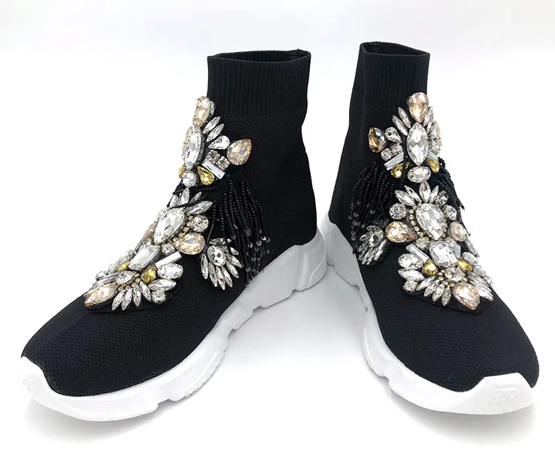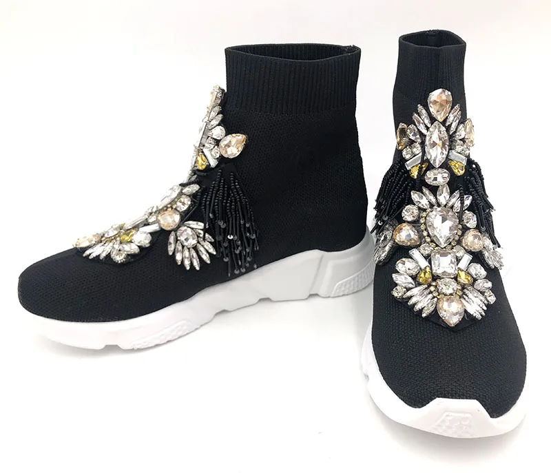 Модные женские кроссовки с украшением в виде кристаллов черная обувь кроссовки Стразы обувь со стразами; Зимняя женская спортивная обувь на плоской подошве для девочек, Женская WK103