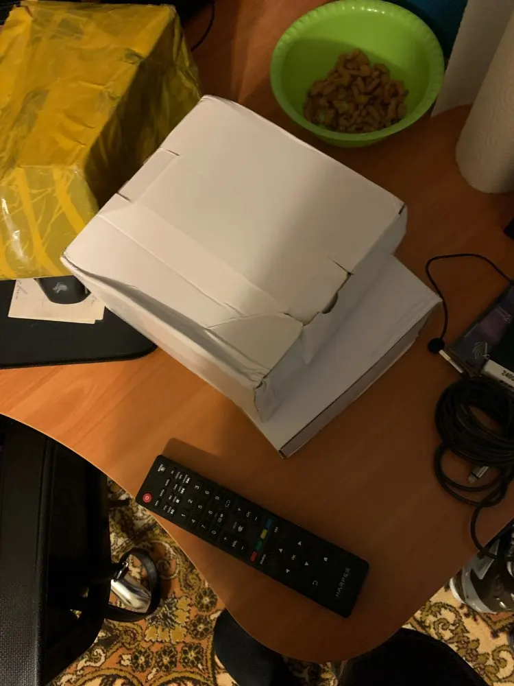 Коробка помята, но внутри все вроде целое. После проверки работоспособности (сейчас у нас морозы за 30 гр.) отпишусь о качестве работы.