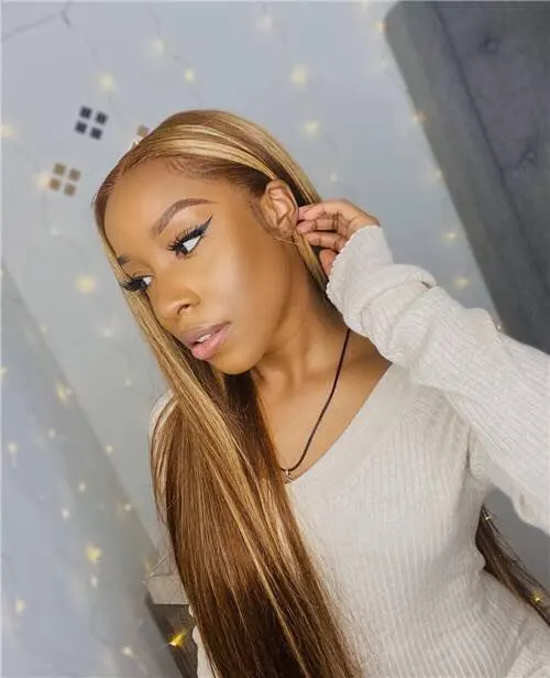Парик Tinashe хайлайтер медовый блонд, парики на шнурке с эффектом омбре, коричневый прямой парик на шнурке, парик с блондинкой, парики из натуральных волос красного цвета