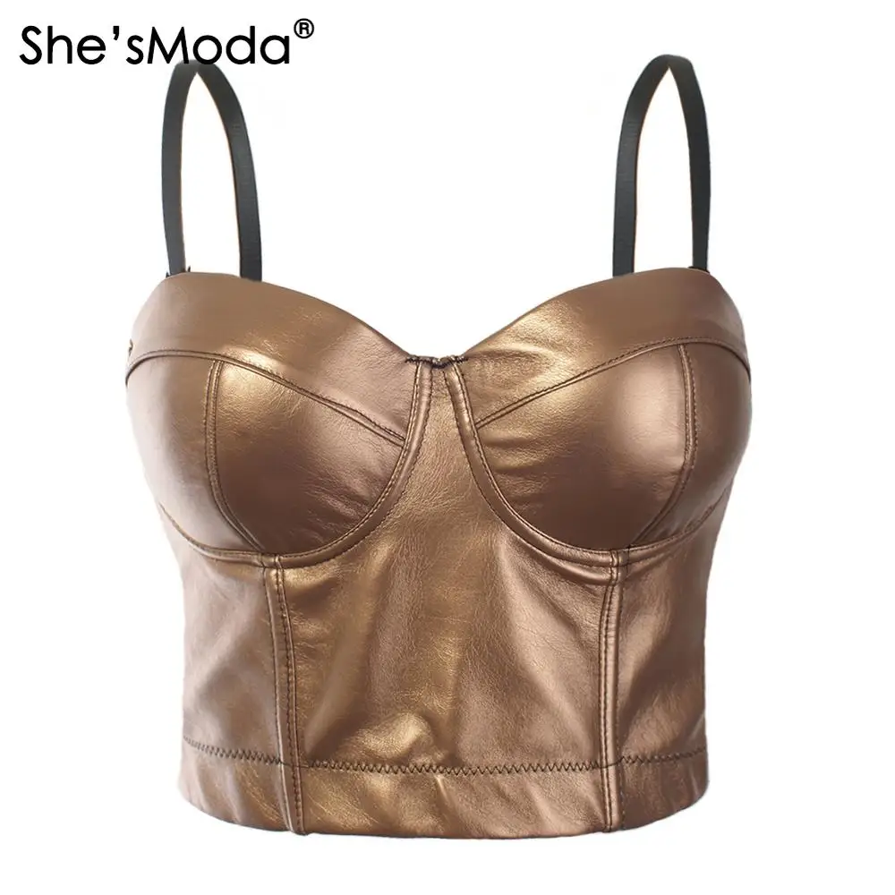 Новинка She'sModa миталлический цвет искусственная кожа Панк Металлический бюстгальтер женский бюстье бюстгальтер для ночного клуба вечеринки короткий топ жилет большого размера