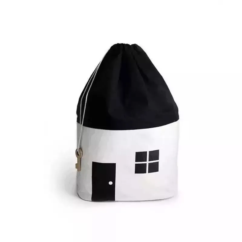 Хлопковая черно-белая Холщовая Сумка на шнурке для хранения детских...
