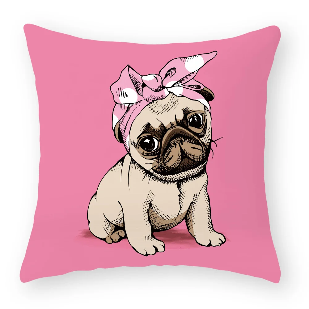 Мультяшный Мопс бульдог декоративная подушка для дивана наволочка Подушка полиэстер 45*45 наволочка домашний декор наволочка 40599
