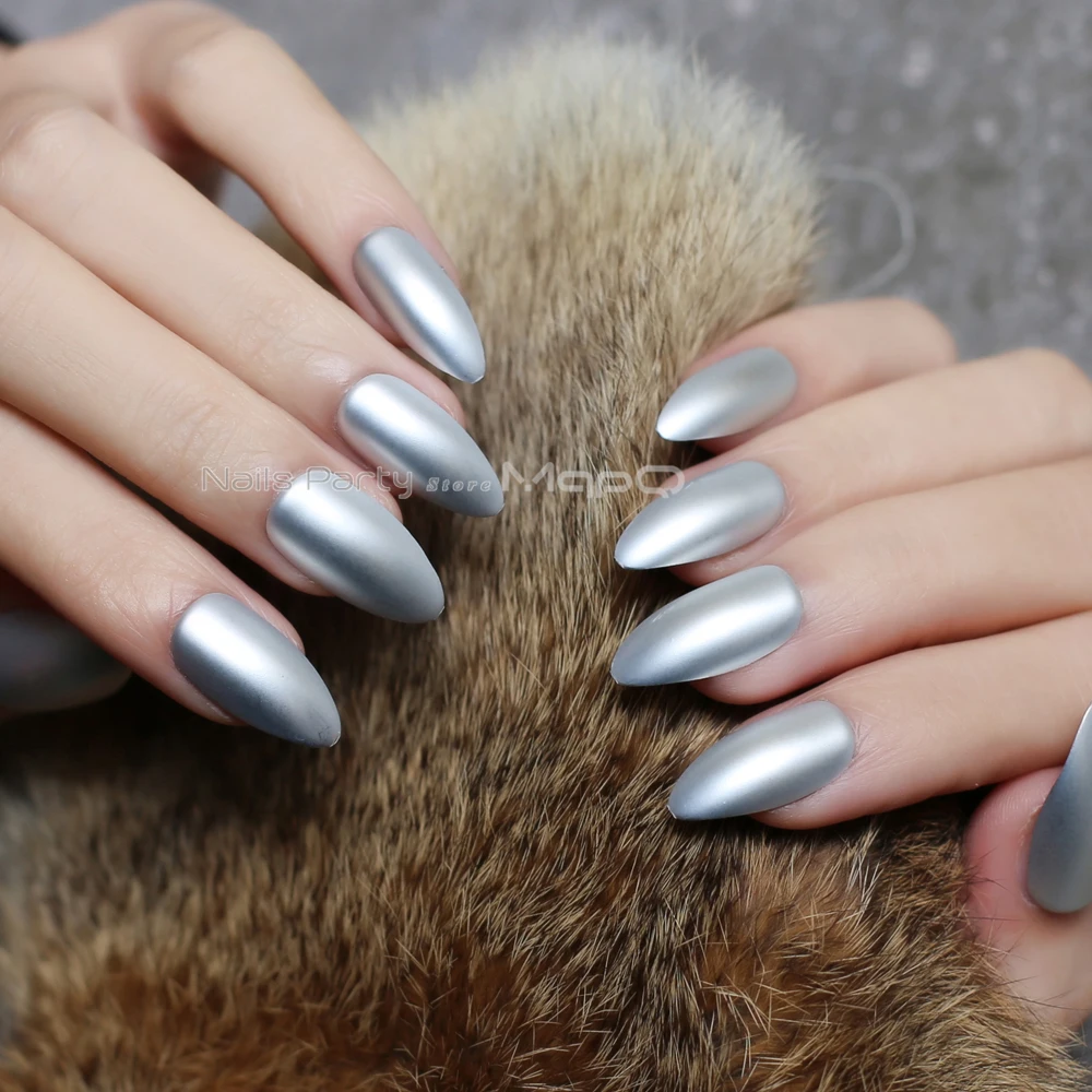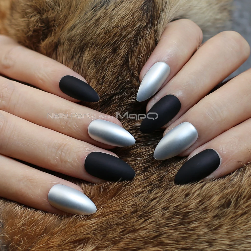 Новые серебристые матовые металлические шпильки, красные средние крутые накладные ногти, синие хромовые Черные накладные ногти вампира, 24 шт., бордовый