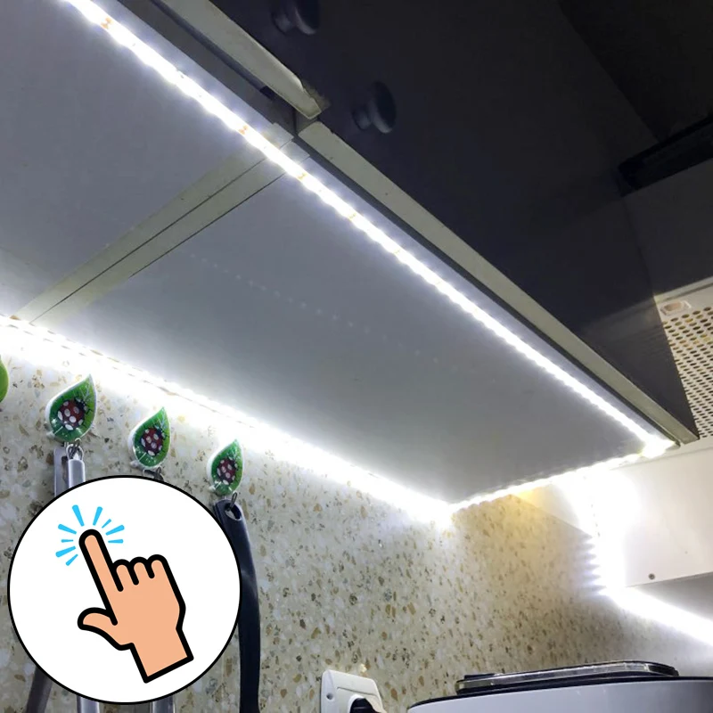 посылочку получила через 13 дней,продавец отправил сразу на следующий день,товар пришел в целости и в хорошем состоянии,обе ленты работают,ленты самоклеющиеся очень крепкий клей все держится отлично,светодиодная лента скрыта в силиконе,согнуть или сделать разворот не возможно,сенсорный выключатель в норме,при нежнейшем косании загорается,свет не очень яркий так как это подсветка дополнительного освещения,создает уют и приятное ощущение.Я покупкой очень довольна, товар и продавца рекомендую однозначно рекомендую очень.