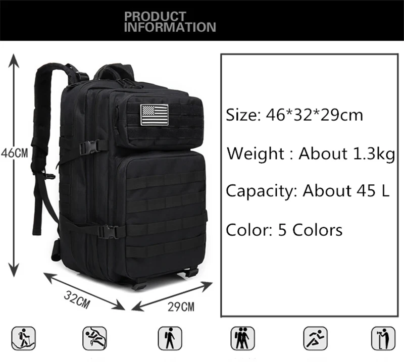 45L 3P Военная Сумка армейская тактическая походная Мужская Военная Тактическая Сумка Оксфорд для велоспорта, пешего туризма, спорта, альпинизма