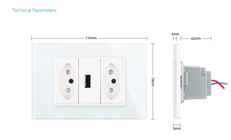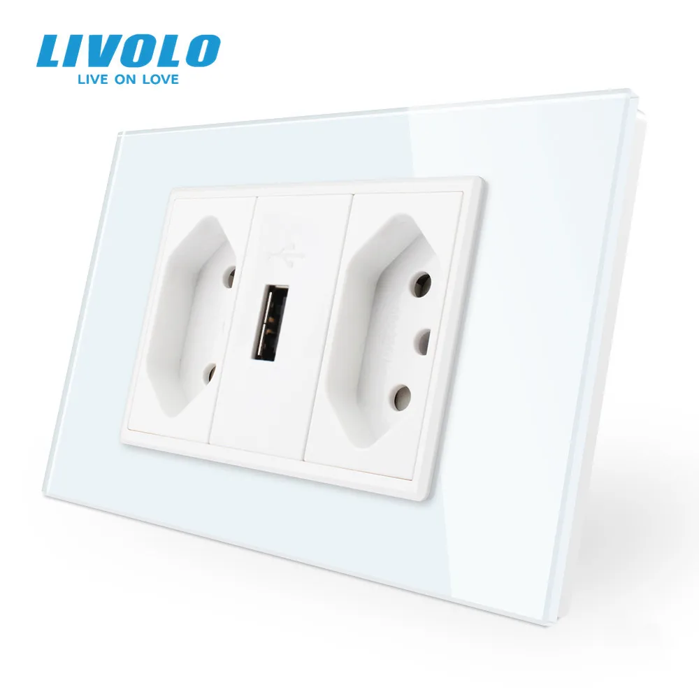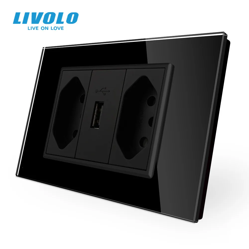 Бразильский стандарт Livolo, 3 контакта, 10 А, 20 А, с USB-разъемом, белаячерная стеклянная панель для вилки type n, заземляющие провода