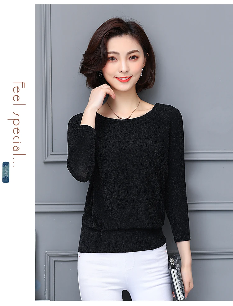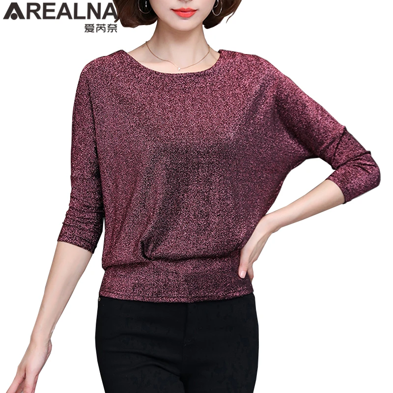 В Корейском стиле и модным кроем рукава летучая мышь блузка для женщин Топ элегантный блеск для женщин яркими блестками блузки и топы для девочек, детские комплекты размера плюс 4XL женские люрексом рубашка