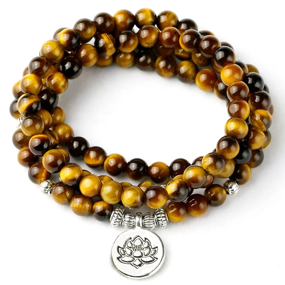 Натуральный тигровый глаз 108 Мала Браслет Ом буддийский браслет 8 ...