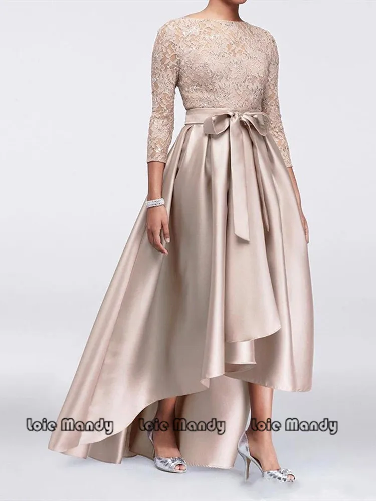 Вечернее платье для матери невесты, с кружевным поясом, цвета шампа...