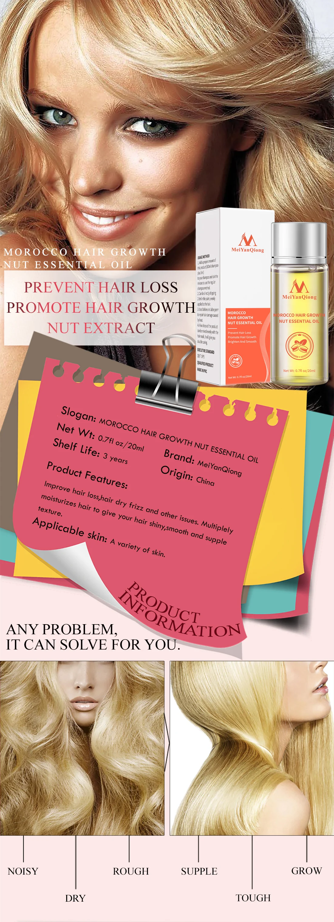 Эссенция для быстрого роста волос из марокканских орехов, 3 шт., для предотвращения выпадения волос, облысения, жидкое масло, средство для ухода за волосами, 20 мл