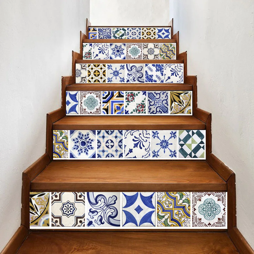 3d арабский Европейский узор плитка настенная лестница съемные наклейки из ПВХ водонепроницаемые обои керамическая роспись постер для домашнего декора лестницы
