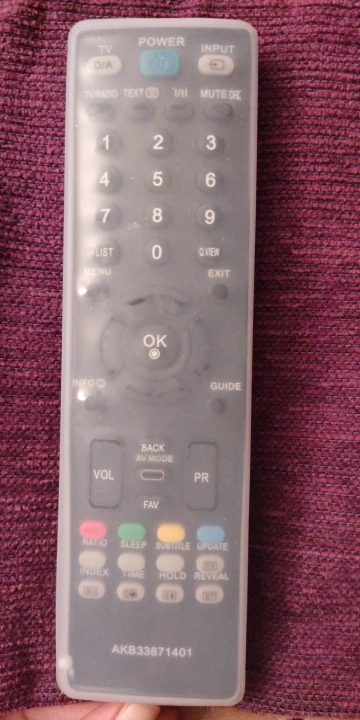 Доставка 2 недели. Селиконовый чехол, хорошо тянется, но форму держит. К пульту LG по размерам подошёл, но по отверстиями не очень (светодиод на половину перекрыт), при этом управление телевизором осуществляется. В описании не видны верхние отверстия под светодиод. Но для кухни чехол свою функцию выполняет.