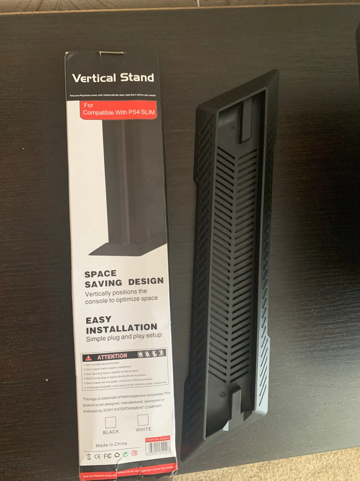 Пришла очень быстро, видимо доставка из России. Сама подставка в пакете, пакет в коробке, коробка в транспортировочном пакете... Немного помяло коробку на почте, но подставка не пострадала. Хорошее качество пластика, не воняет, без зазоров, линии не кривые. Прошка в подставку вошла без проблем, подставка ничем не крепится к консоли, держит силой трения. Если консоль поднять - подставка не свалится. В общем, если просто стоять - пойдет. А за такие деньги (300 с чем-то рублей) это вообще пушка. Всем рекомендую