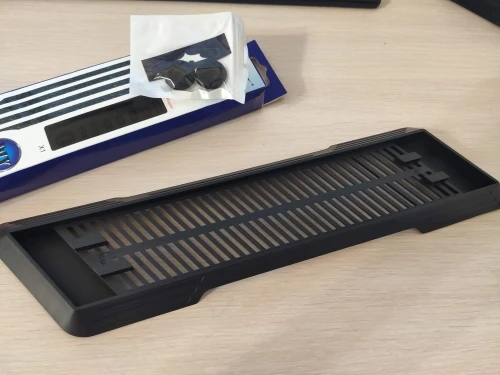 Подставка пришла меньше чем за месяц в Краснодар. Возможно, ее бы могли лучше упаковать, ну да Бог с ним - не электроника все же. Боялся, что не подойдет по размеру, но нет - все идеально. С нею гораздо лучше, чем просто на ребре - PS сразу стала издавать намного меньше шума.