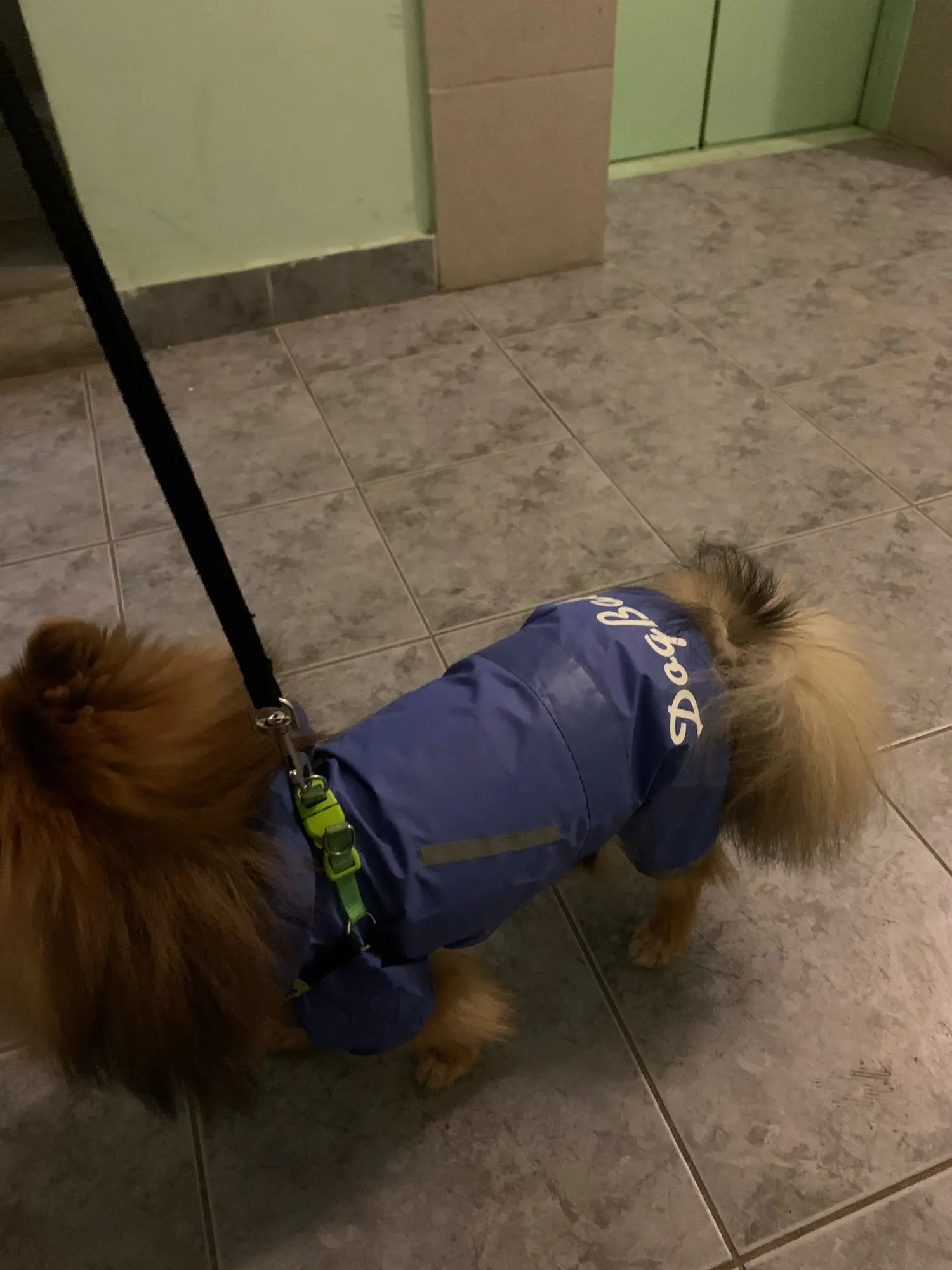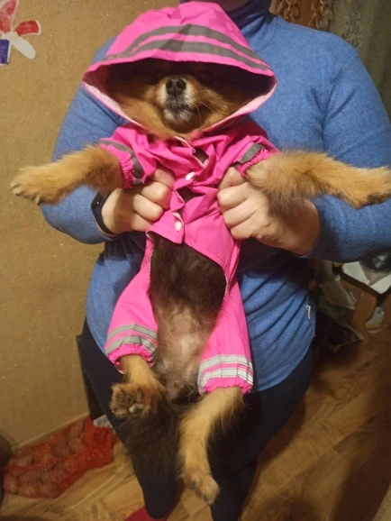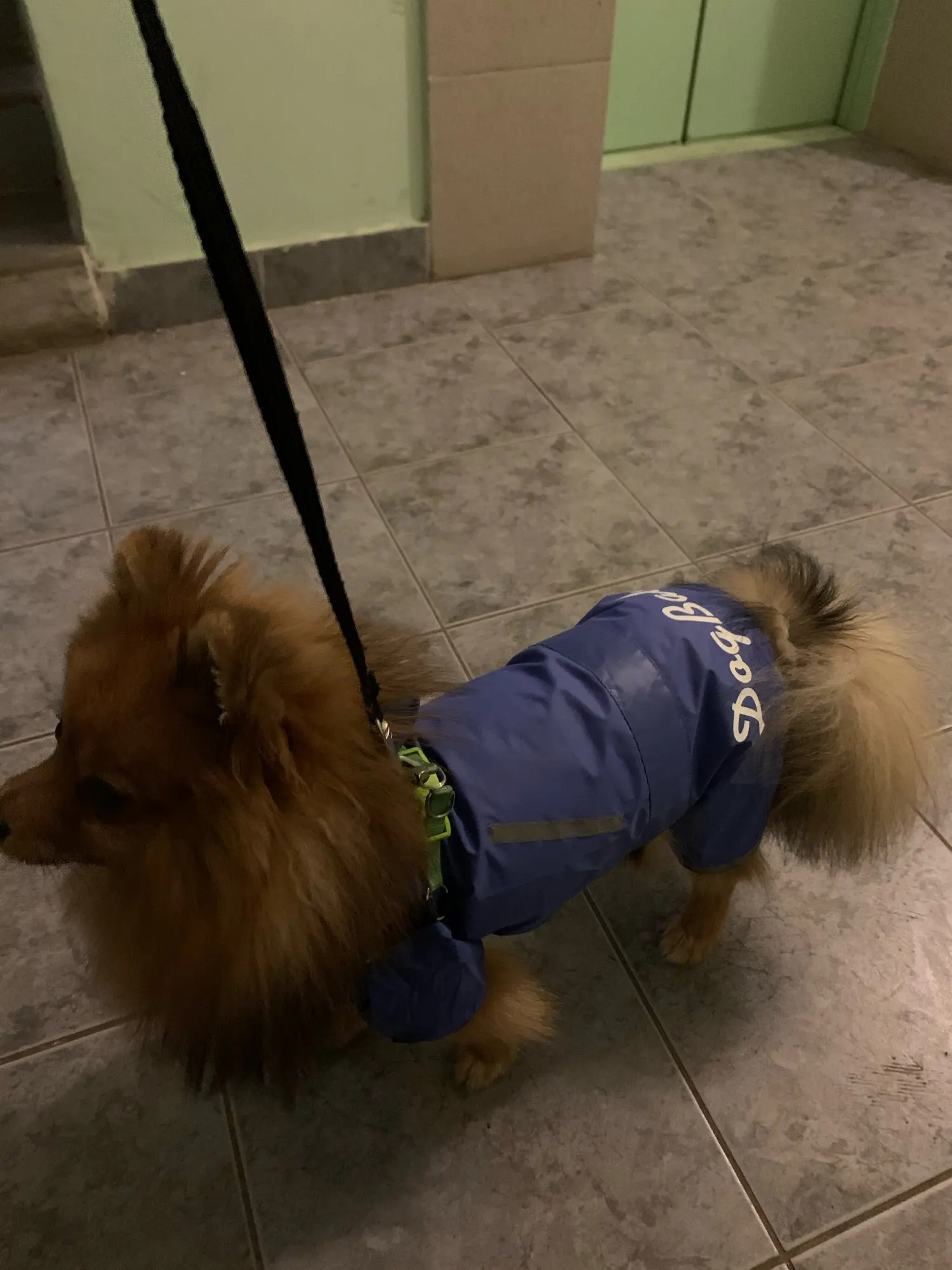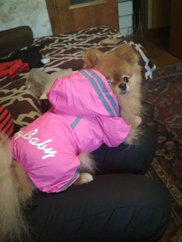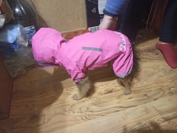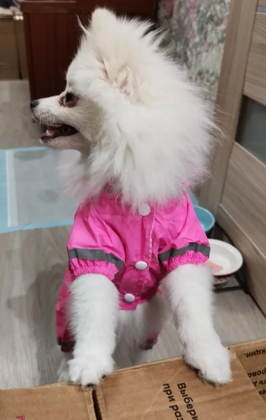 Дождевик получила быстро. Это второй дождевик который я заказала в этом магазине. Первый был L ,но он оказался маловат для моего шпица ( вес 3600). Из-за большой и пушистой шерсти,он тяжело застёгивается и слишком сковует движения, поэтому решила заказать на размер больше. Это XL . Но разница в размере оказалась значительной, теперь дождевик большеват. Но лучше пусть будет немного больше,чем мал. Посмотрим как будет носиться. ....