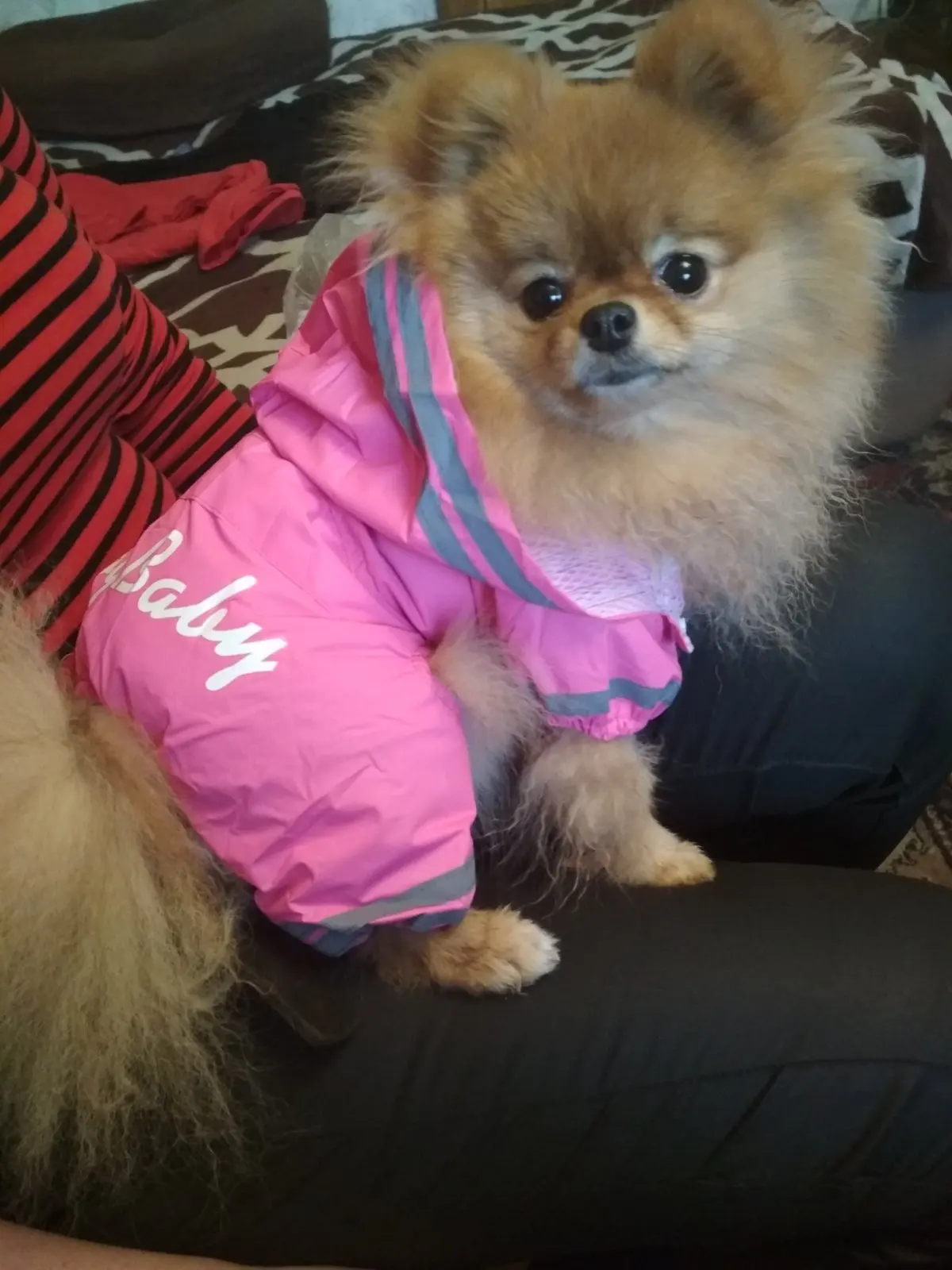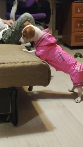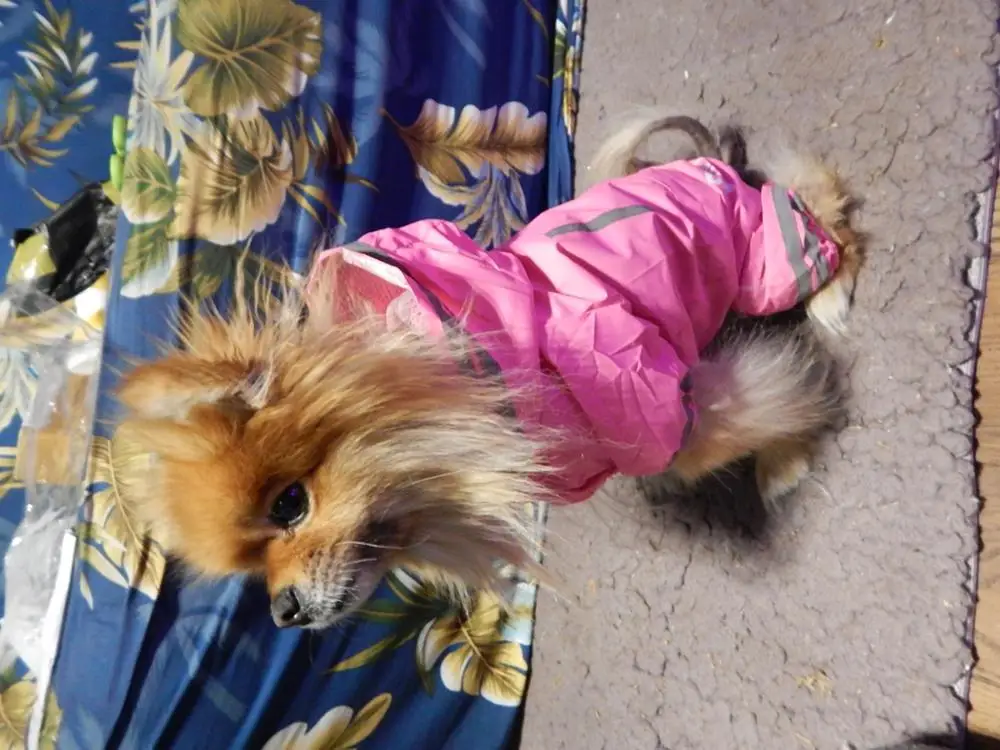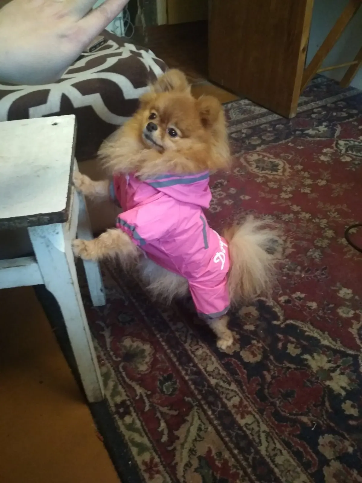 Дождевик получила быстро. Это второй дождевик который я заказала в этом магазине. Первый был L ,но он оказался маловат для моего шпица ( вес 3600). Из-за большой и пушистой шерсти,он тяжело застёгивается и слишком сковует движения, поэтому решила заказать на размер больше. Это XL . Но разница в размере оказалась значительной, теперь дождевик большеват. Но лучше пусть будет немного больше,чем мал. Посмотрим как будет носиться. ....