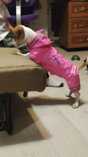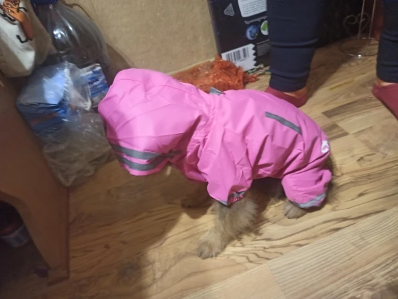 Классный дождевик, яркий, сшит качественно, нитки не торчат, кнопки рабочие ! Заказала размер М на мини-шпица 5 месяцев (2 кг), сейчас влезаем, но к лету, думаю, будет маловат. Заказала ещё один, размер L, посмотрим, как будет по факту летом, ненужный продам). Очень довольна продавцом, мгновенно отправляет товар-такая скорость , хотя и почтой России, заказ пришёл быстро!