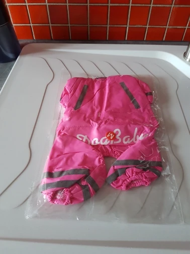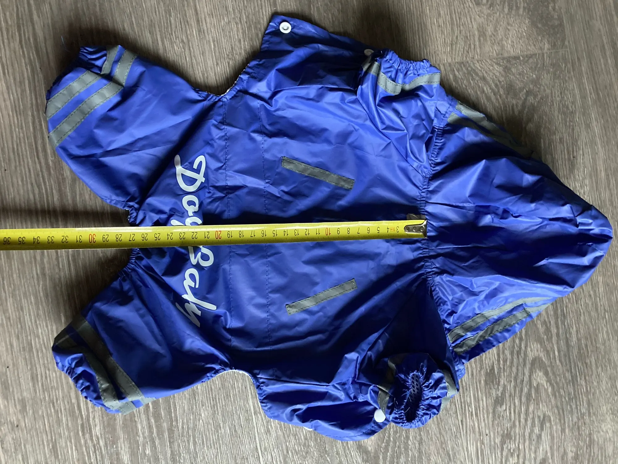 комбинезон симпатичный. доставили быстро Новой почтой - около 3 недель. Но мы снова не угадали с размером - большеватый по спинке.. это у нас уже третий комбинезон: если длинна хорошая, то по ширине не подходит, в этом комбинезончике по окружностям в принципе подходит, так собака короткая. По качеству хороший, наверное попробуем подогнать под размер животного. Забрали только сегодня, поэтому дождем пока не проверенный.. а так понравился лаже мужу, которому сложно угодить