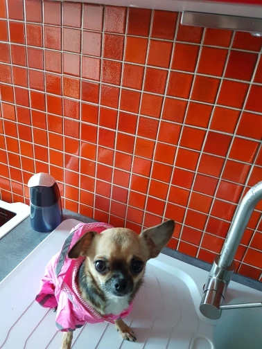 Хороший дождевик , сделан цена- качество . Удобный для песика