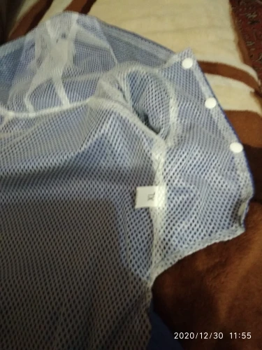 Комбинезон хороший, сшит качественно. С размером не угадали. На папильона весом 5 кг. заказали размер L - слишком маловат. Доставили в течении двух недель, у данного продавца заказывать можно.