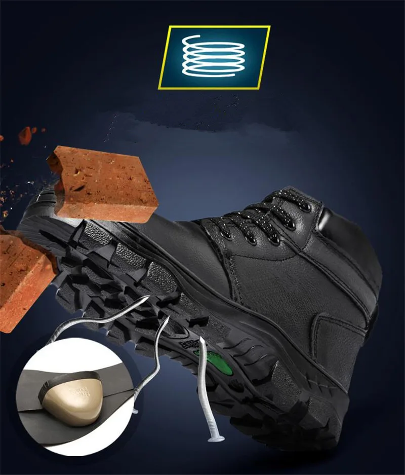 Мужская Рабочая защитная обувь со стальным носком, зимние кожаные рабочие ботинки для мужчин, Нескользящие, противоскользящие, устойчивые к Антистатическая одежда icon star icon star icon star icon star icon star
