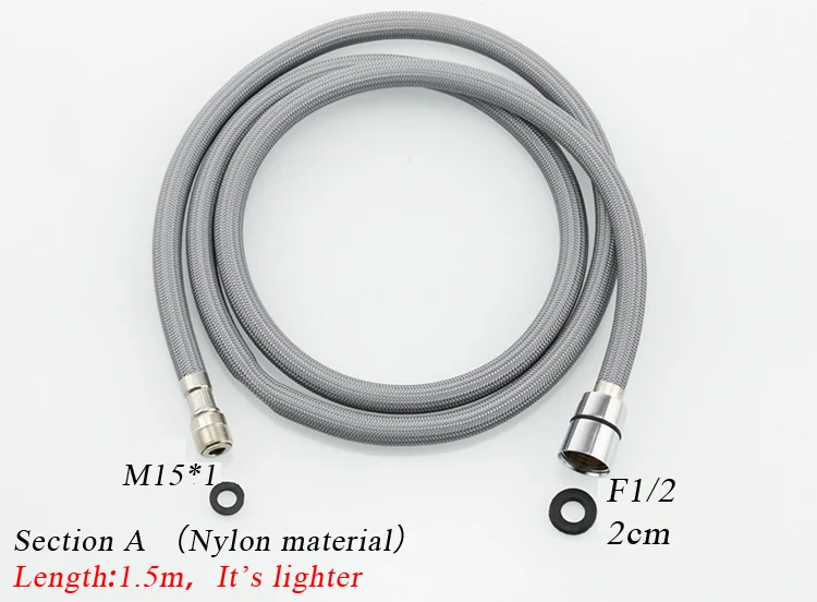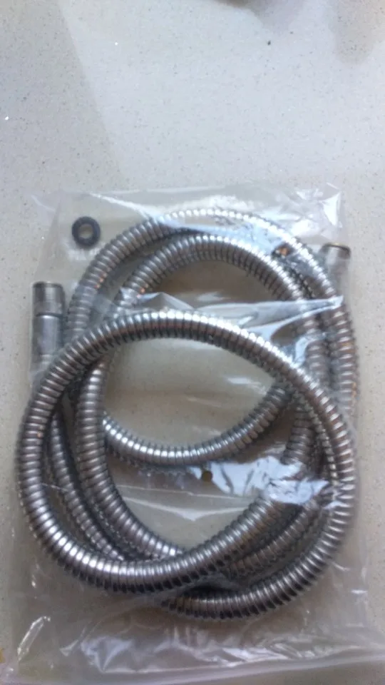 Красивый гибкий. Довольно тонкий должен идти правильно в моем кухонном кране. Хорошо упакован и поставляется с двумя резиновыми уплотнениями Хорошо сделано 1,5 м растянуто
