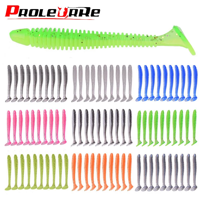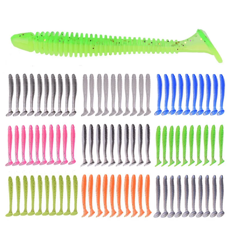 Приманка рыболовная в виде червя T Мягкая приманка с хвостом, 50 мм, 70 мм, 10 шт.