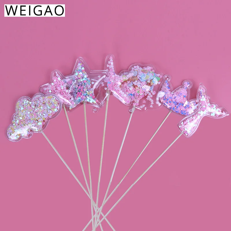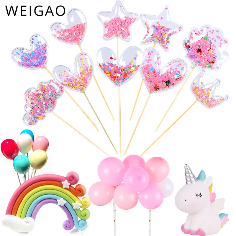 Блестящий Топпер для торта из ПВХ WEIGAO, звезда, облако, корона, радуга, единорог, украшение на день рождения, единорог, радуга, украшения для торта