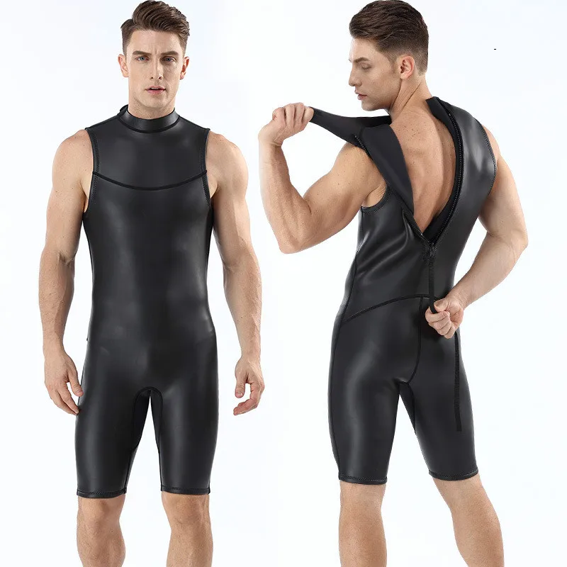 Мужской гидрокостюм 2 мм, короткая черная Слитная водоотталкивающая одежда без рукавов, костюм для дайвинга, для дайвинга, серфинга, Снорклинга, зимний купальник