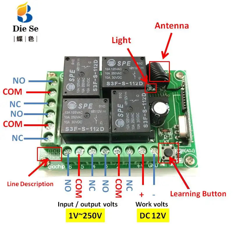 433 МГц универсальное реле дистанционного управления 12 В 4CH релейный модуль приемника RF 4 кнопки пульт дистанционного управления гаражный дверной светильник переключатель Область применения продукта Дверь гаража с дистанционным управлением \ дверь дома с дистанционным управлением \ лампа с дистанционным управлением \ шторы с дистанционным управлением \ ворота с дистанционным управлением и другие устройства дистанционного управления