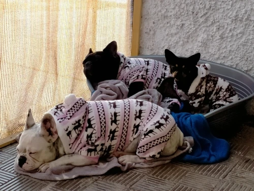 Теплое хорошее качество Мне нужно было немного порезать их на шее, чтобы они не стали слишком тугими, jejeje и chichuahua. Я должен был попросить вас о размере M hehehe Чихуахуа 4 кг, лучше купить Размер M Черный Бульдог 10 кг, идеально подходит для него XXL Белый Бульдог 13 кг, получил немного туго размер XXL